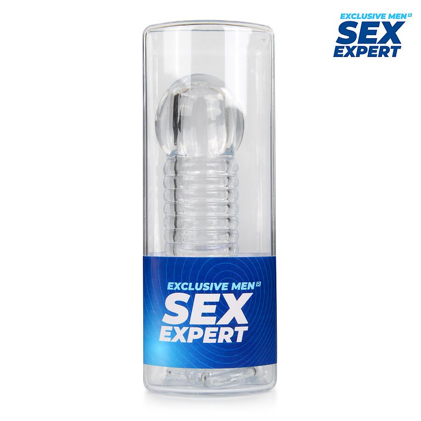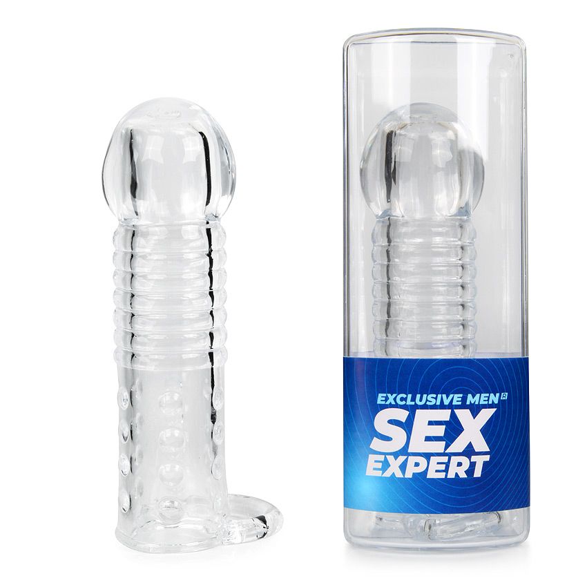 Прозрачная рельефная насадка-реалистик с петлей для мошонки – 13,5 см.
