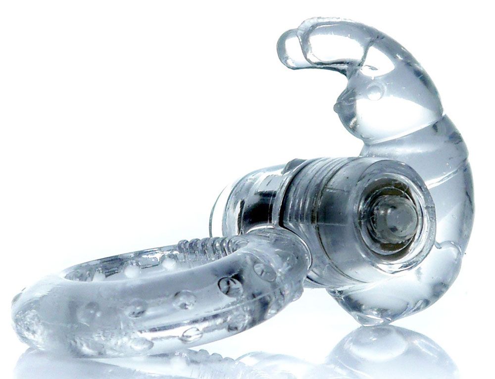 Прозрачное эрекционное виброкольцо с клиторальным зайчиком