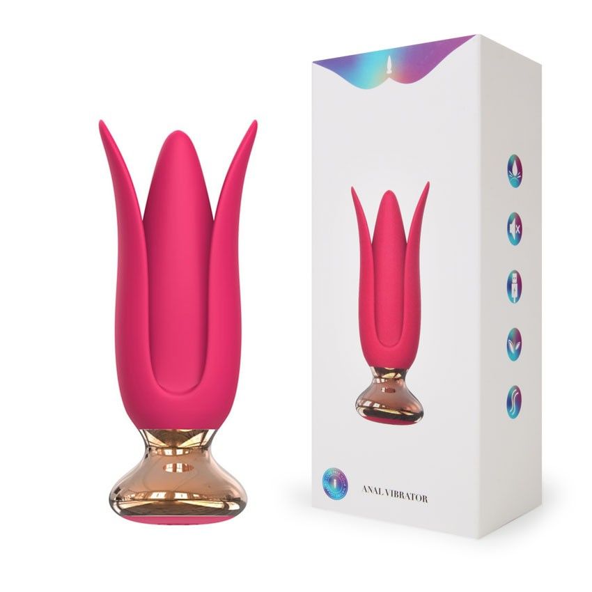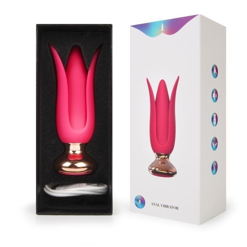 Розовая анальная вибровтулка с лепестками. 10 режимов вибрации. Рабочая длина – 9,5 см.