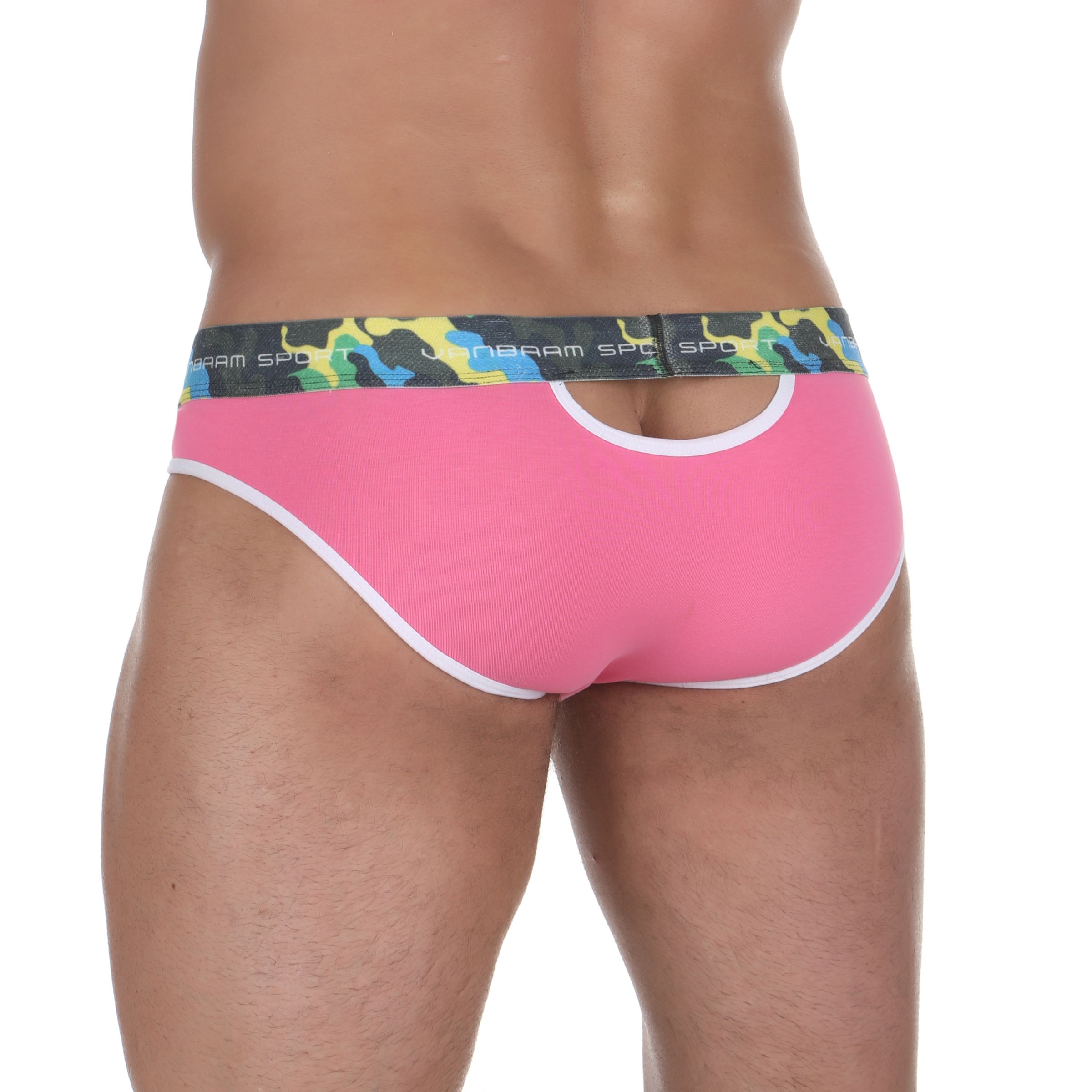 Розовые мужские трусы-слипы с пикантными вырезами под поясом