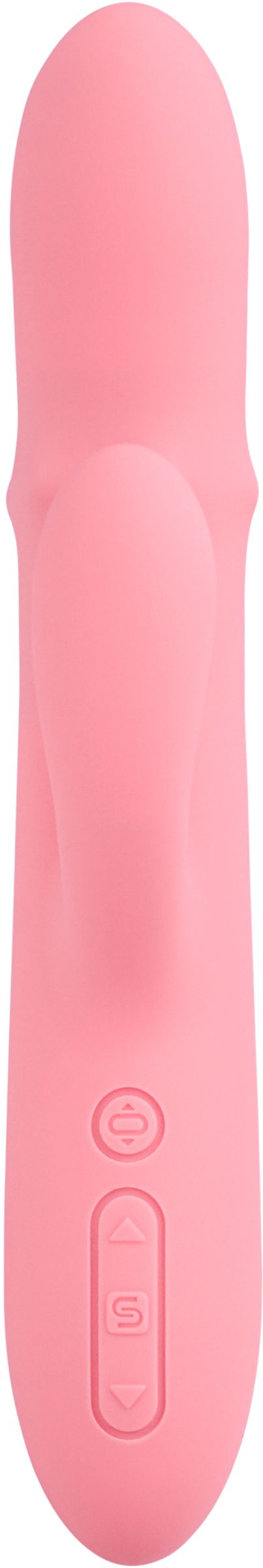 Розовый интерактивный вибратор-кролик Mora Neo с кольцом из бусин – 19,5 см.