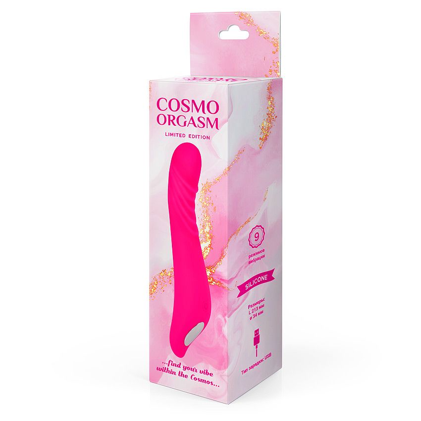 Розовый изогнутый вибромассажёр из силикона для G-стимуляции – 21,3 см.