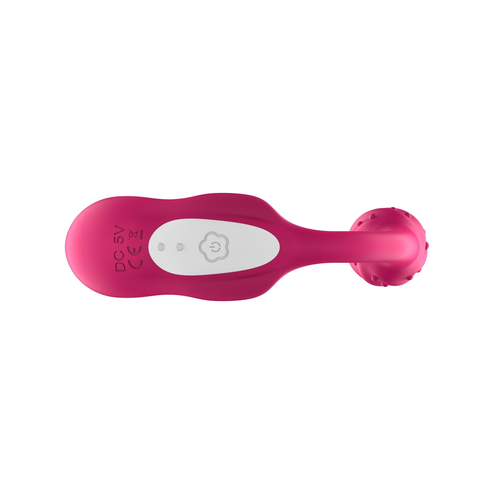 Розовый многофункциональный стимулятор для женщин. Имеет форму лодочки с бугорком посередине и отростком-шишечкой. Может вкладываться в трусики (и при этом отросток вводится в анус), может использоваться для одновременной стимуляции точки G и клитора. Управляется при помощи пульта ДУ, 7 режимов вибрации.