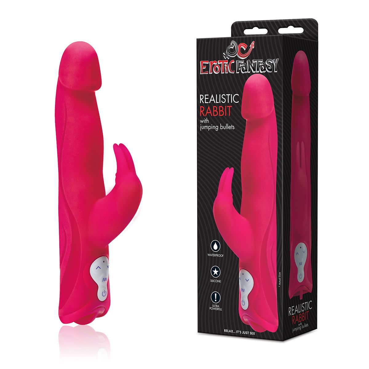 Самый невероятный вибратор с большим набором функций яркого розового цвета. Главное отличие от всех похожих вибраторов, что в игрушке 3 мотора! Имеет 7 режимов, включая прыгающие моторы, когда попеременно включается каждый мотор. Два – в столе вибратора, один – в клиторальном стимуляторе, который выполнен в виде кролика. Игрушка из силикона медицинского качества. Водонепроницаем. Рабочая длина – 13,5 см. Минимальный диаметр – 3 см.