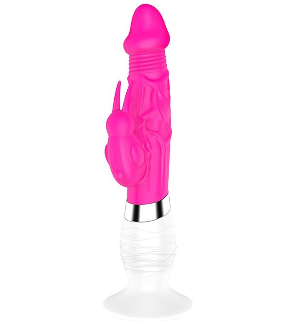 Розовый вибратор BELLA с клиторальным стимулятором – 26 см.