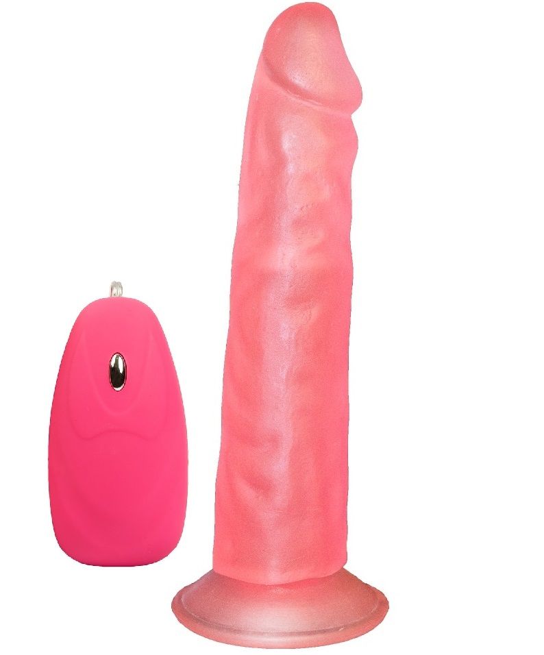 Розовый вибромассажёр на присоске с проводным пультом – 16,5 см.