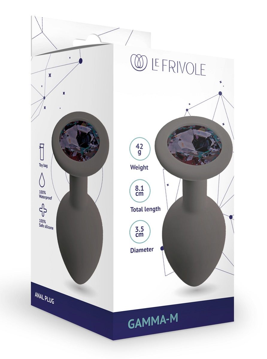 Серая анальная пробка с черным кристаллом Gamma-M – 8,1 см.