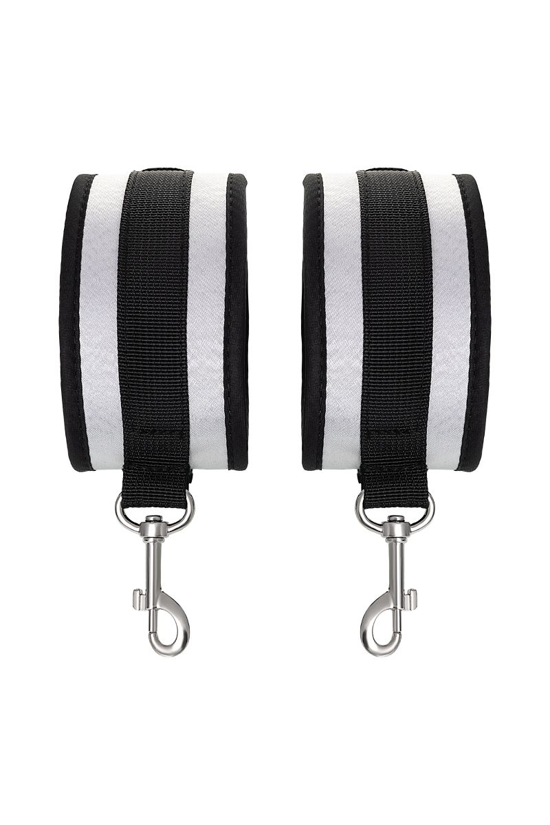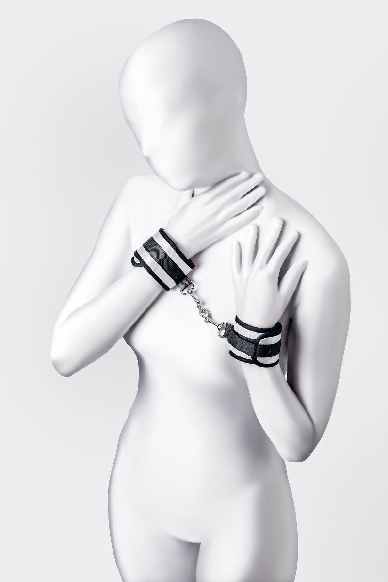 Наручники — классический предмет для игры в подчинение, обязательный для начинающих и опытных поклонников БДСМ. Блестящий во всех смыслах аксессуар для ограничения свободы: сатиновый материал поблескивает, когда на него падает свет. Необычное сочетание серебристого и черного, совсем нехарактерное для классического исполнения аксессуаров в стиле БДСМ, придает изюминку и новизну. Подчиненный с таким аксессуаром выглядит неотразимым. Застежка велкро позволяет зафиксировать руки любого размера. Между собой наручники скрепляются карабинами, практически не оставляя свободы действий. Никакого послабления, только полное подчинение своему Доминанту, где бы ни были зафиксированы руки: впереди или за спиной. Используйте дополнительно цепочку для расширенных возможностей фиксации положения рук. Начните игру в подчинение с этим аксессуаром, и вы поймете, как развивать свою чувственность с помощью ограничения свободы одного из партнеров. Ширина – 5,5 см. Длина сцепки – 8 см.