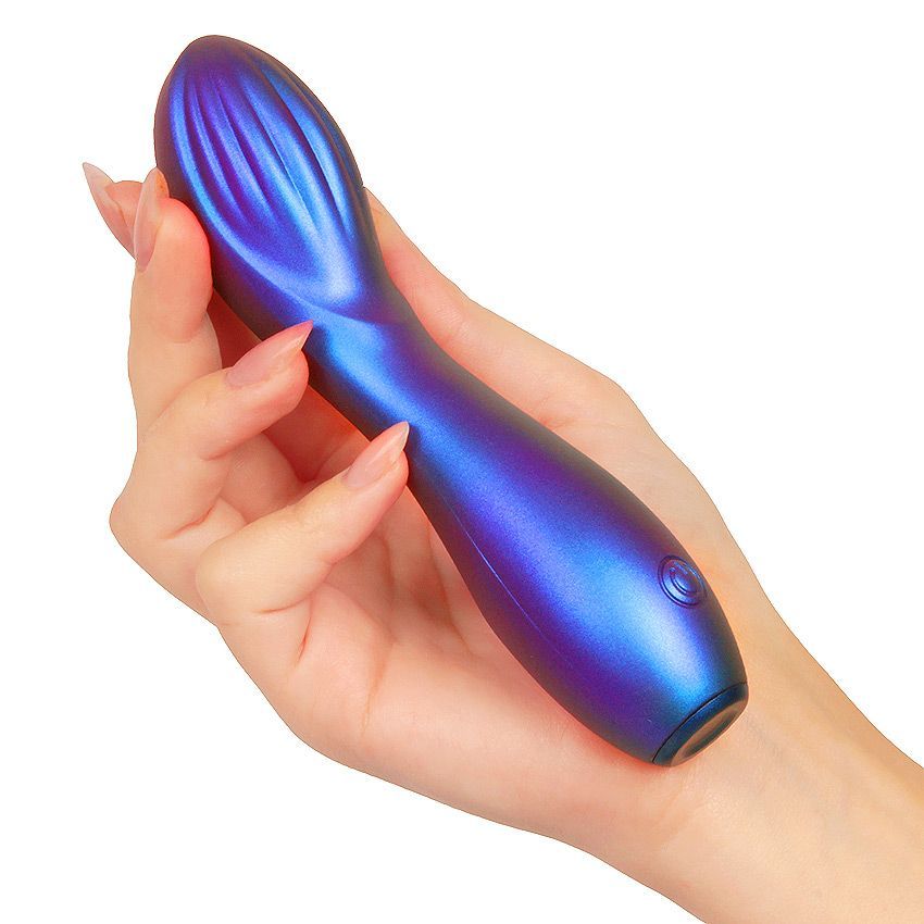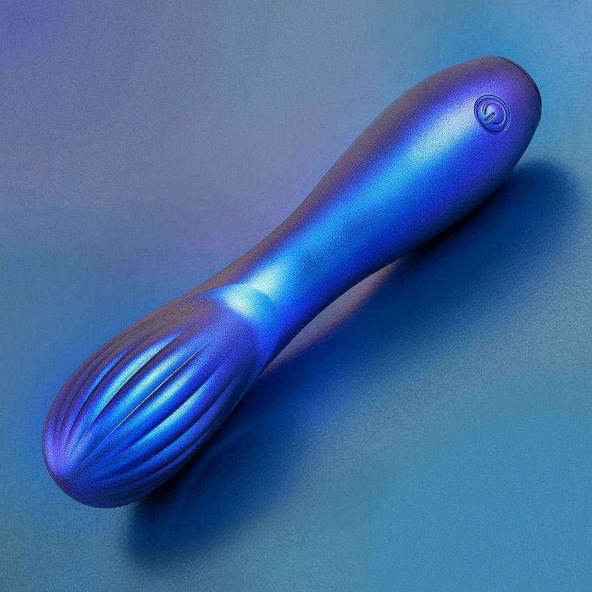 Синий вибромассажер с загнутой головкой. 10 режимов вибрации. Перезаряжаемый.