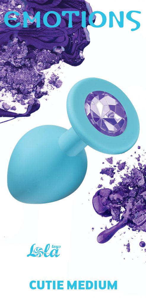 Средняя голубая анальная пробка Emotions Cutie Medium с фиолетовым кристаллом – 8,5 см.