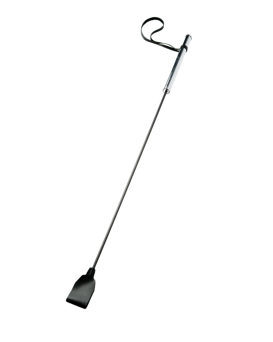 Классический стек с гибкой, но прочной основой. Ударная часть выполнена из натуральной кожи. На металлической рукояти закреплена ручка-петля для дополнительной фиксации изделия на запястье. Длина ручки – 20 см. Размеры шлепка – 7х5 см.