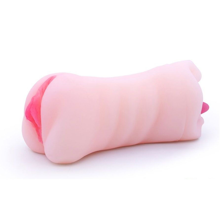 Телесный двусторонний мастурбатор – вагина и ротик с язычком. Очень эластичный и приятный на ощупь.