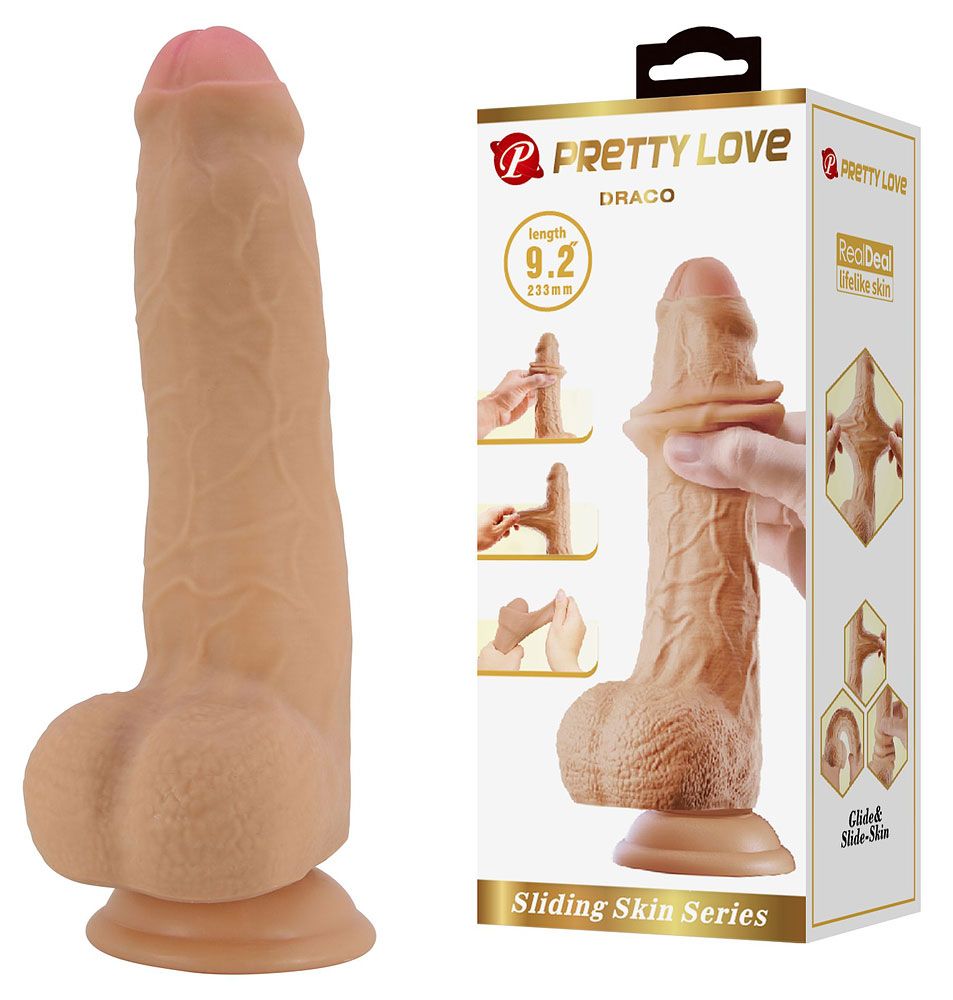 Телесный фаллоимитатор с подвижной кожей Draco – 23,3 см.
