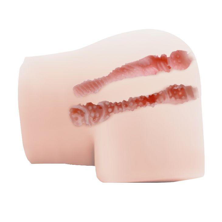 Реалистичная вагина и анус из специально разработанного материала, максимально приближенного к настоящей коже. Приятная на ощупь, не имеет швов. Имеет два любовных отверстия, внутренняя поверхность ребристая. Комплектуется виброяичком с выносным пультом управления вибрацией. Размеры – 21 х 11,5 х 15,5 см.