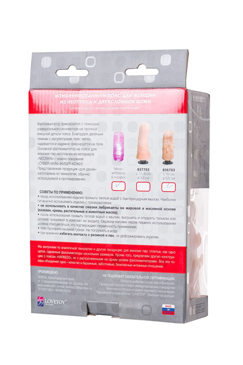 Обе насадки изготовлены из материала термоэластопласт по рецептуре НЕОСКИН на эластичном каркасе. Нежные и упругие атравматичные фаллоимитаторы дадут то, что мечтает получить женщина: ласку, деликатность, заботу. Фаллоимитатор фиксируется с помощью универсального коннектора на прочной внешней детали пояса. Благодаря двойным лямкам с регуляторами, пояс легко надевается и надежно держится на теле. Основной фаллоимитатор на поясе для женских пар. Длина вагинальной пробки – 10 см., диаметр – 3,5 см.