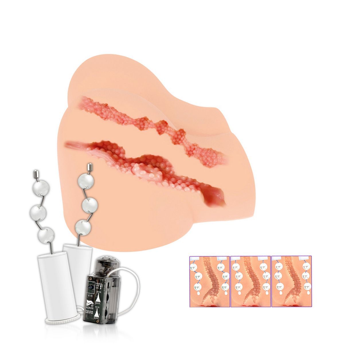 Полуторс с вибрацией, ротацией и звуком. Два отверстия: вагинальное с выраженным эффектом всасывания и тесное анальное. Внутренняя структура: – S-образное анальное отверстие, очень тесное, с фактурной структурой стенок – Ярко…