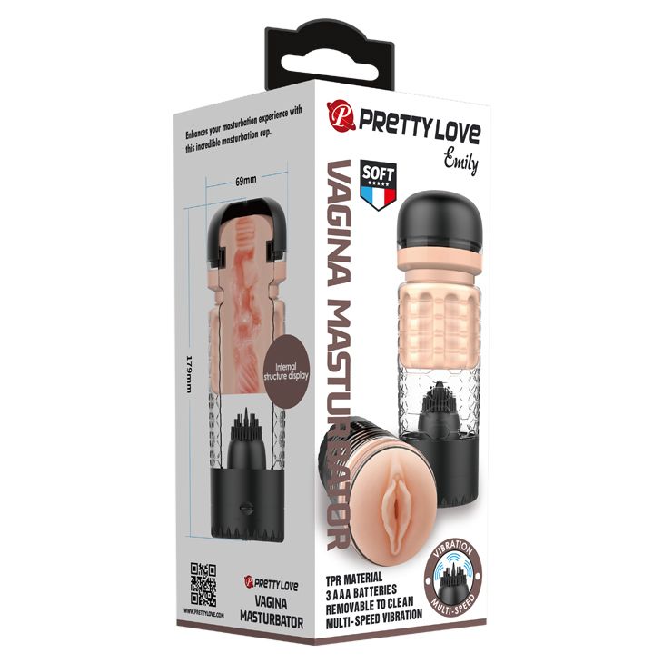Вибромастурбатор-вагина Emily в черной колбе