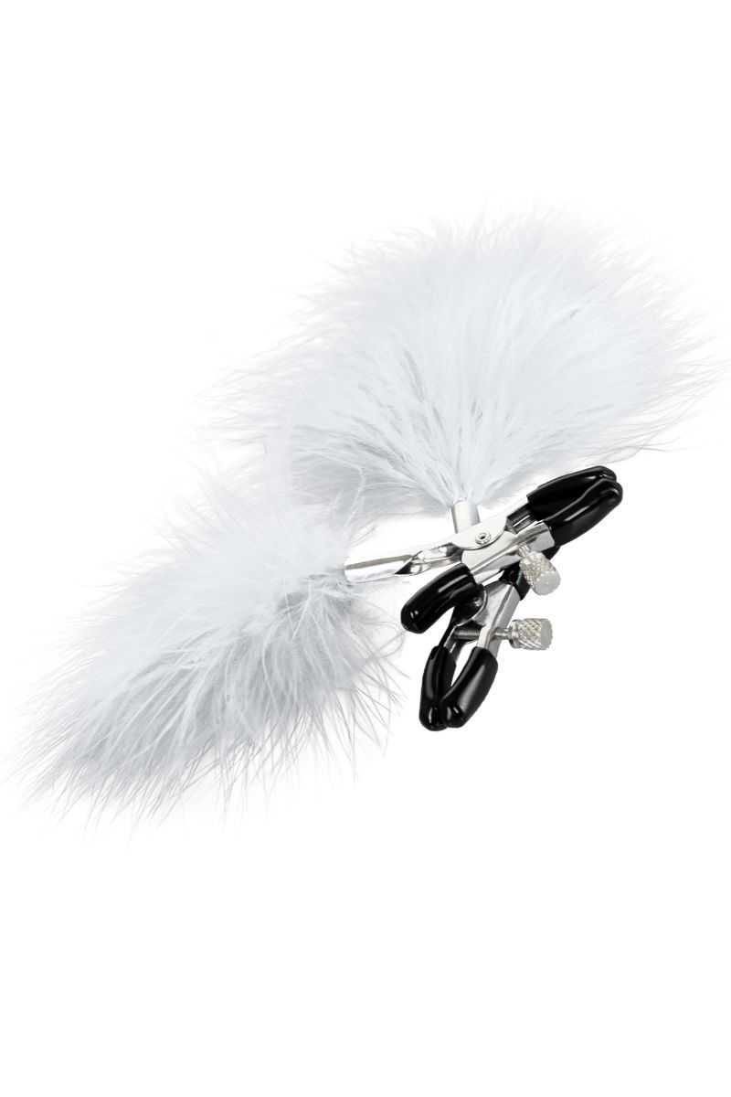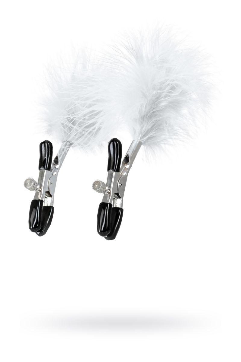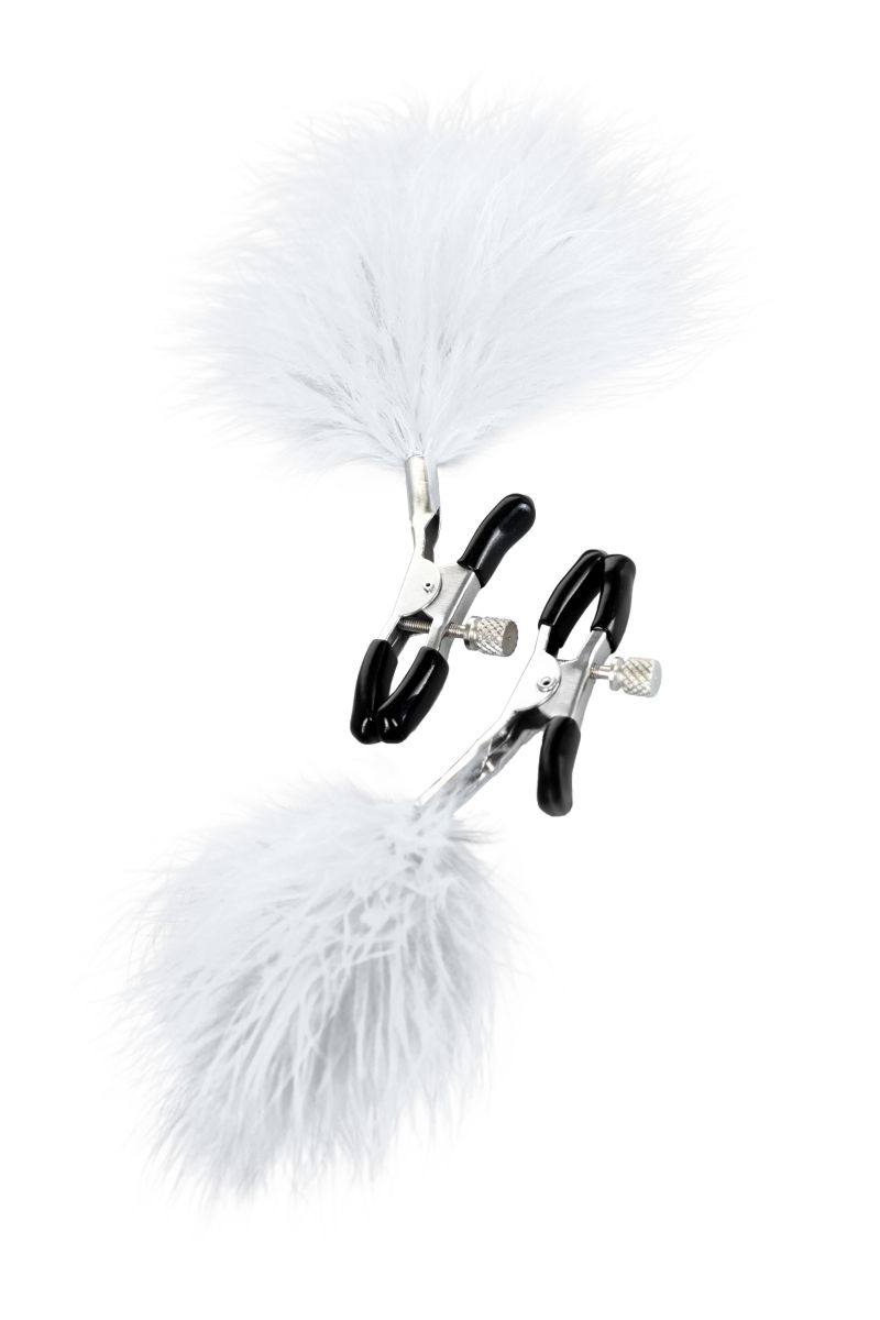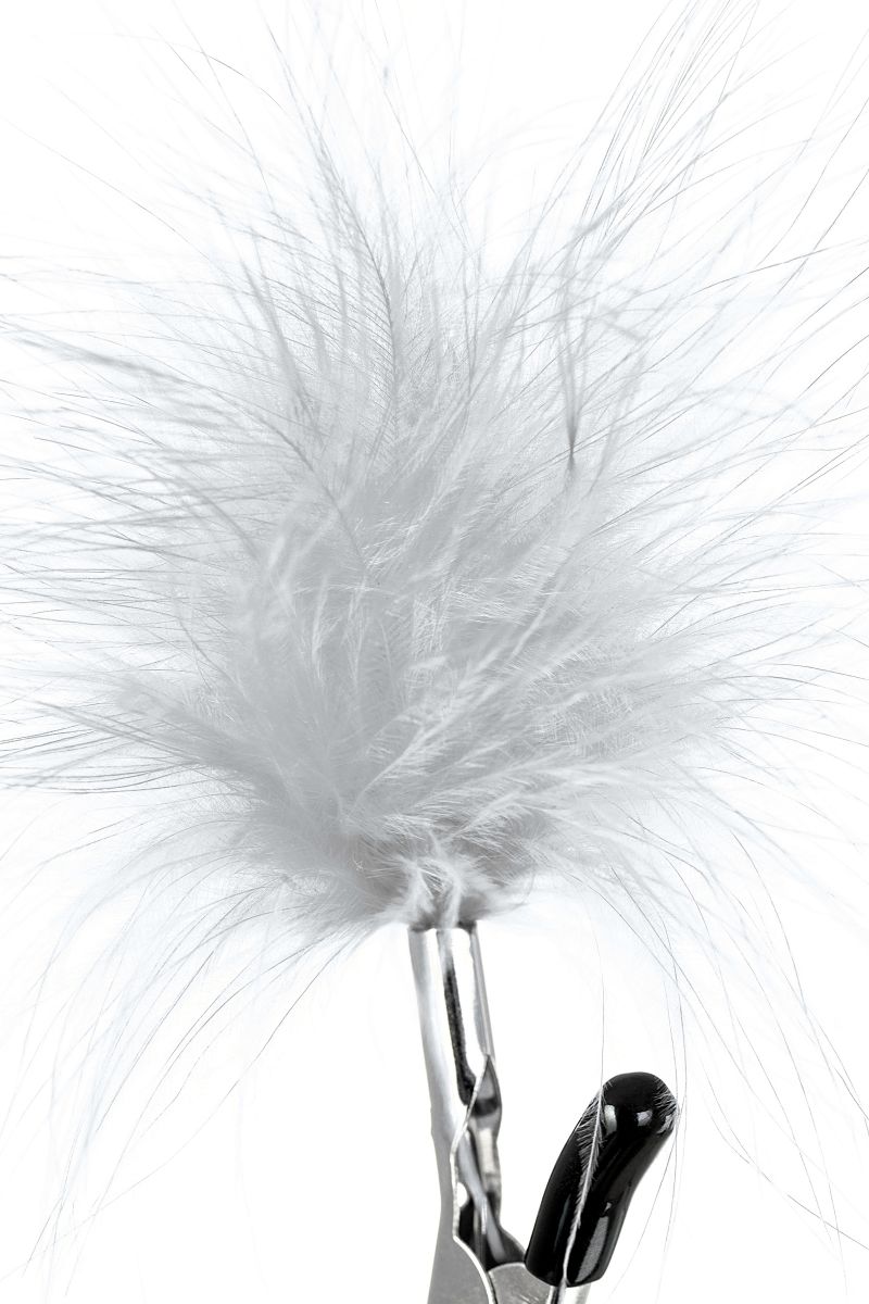 Пожалуй, самые милые из всех зажимов – украшенные перьями. Они стимулируют не только сжатием сосков, но и щекочут грудь. Сдавливание регулируется болтиком и может быть усилено или уменьшено во время интимной игры. Покрытие на концах зажимов защищает нежную кожу.