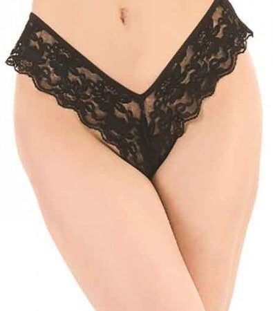 Микроскопические трусики-стринги черного цвета. Практически не оставляют места для фантазий.