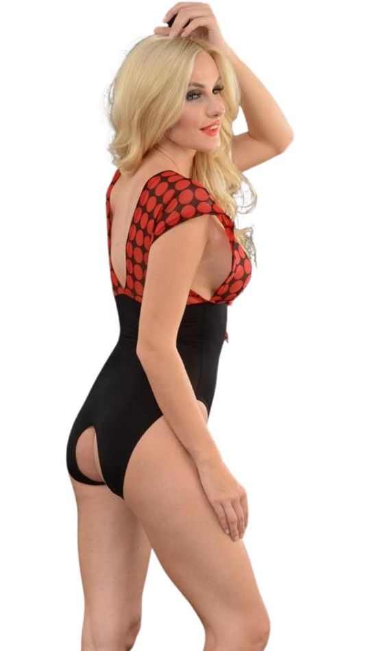 Женское боди с верхом в крупный горох